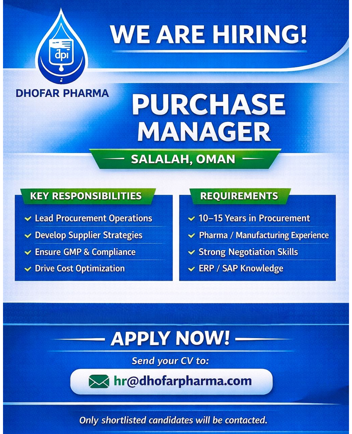 شركة ظفار للصناعات الدوائية - وظيفة شاغرة ( PURCHASE MANAGER )