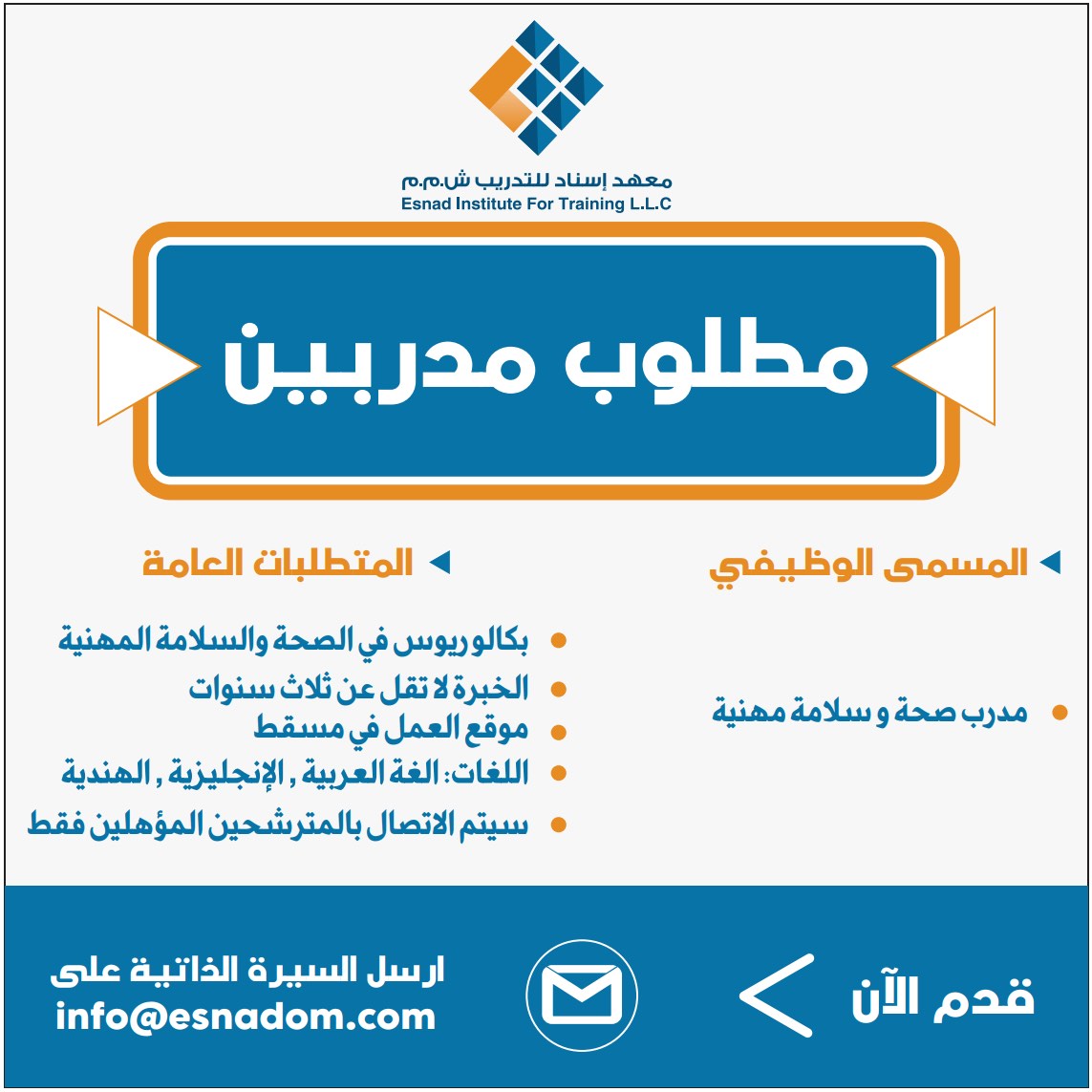 معهد إسناد للتدريب - وظيفة شاغرة ( مدرب صحة وسلامة مهنية )