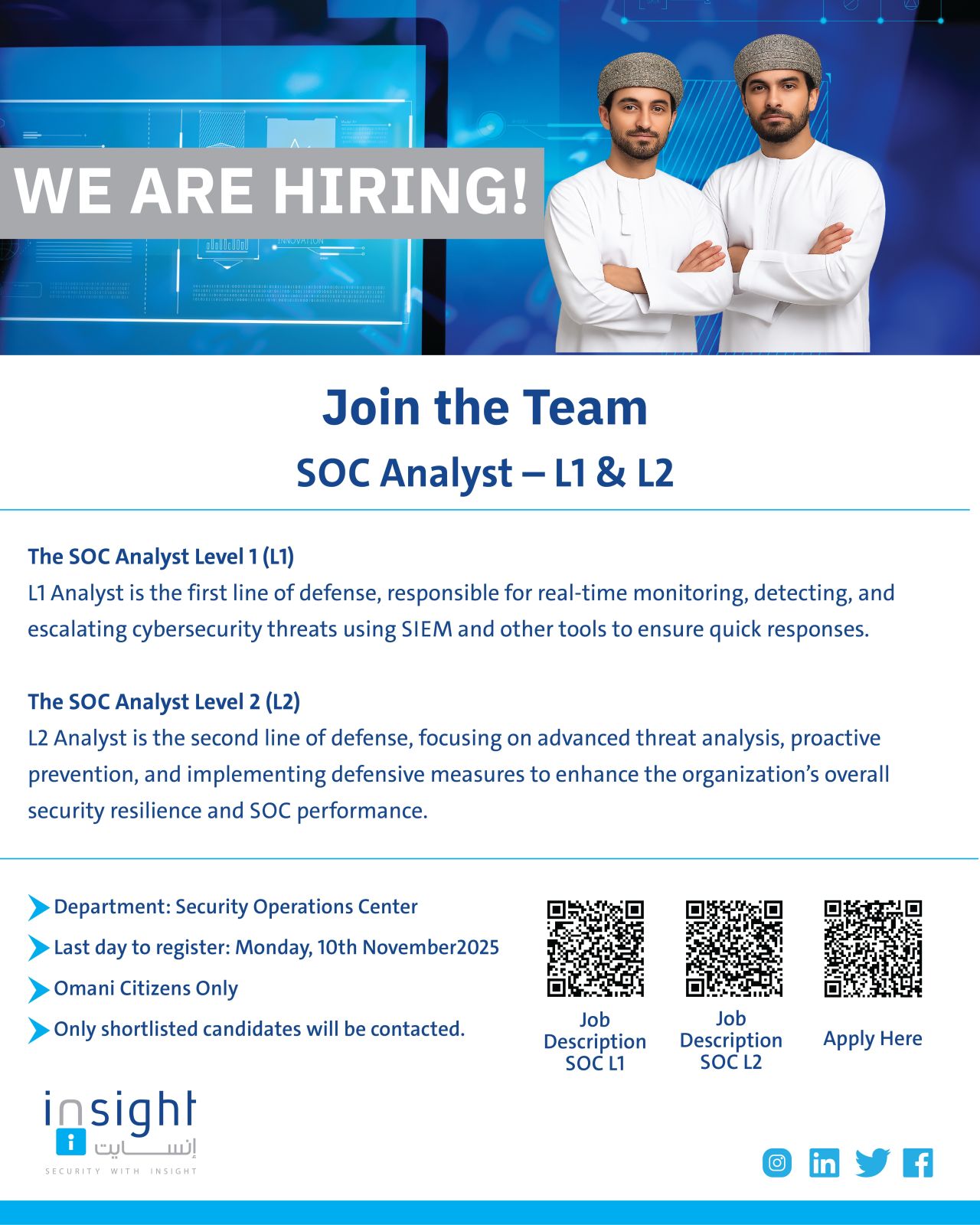 شركة إنسايت - وظيفة شاغرة ( SOC Analyst - L1 & L2 )