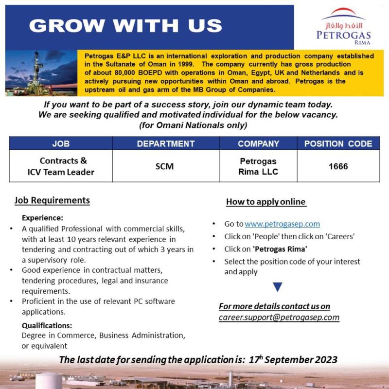 شركة النفط والغاز PETROGAS - وظيفة شاغرة ( Contracts & ICV Team leader )