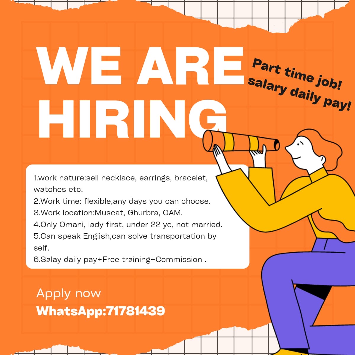 متجر لبيع الاكسسوارات في الغبره - وظيفة شاغرة ( مبيعات )