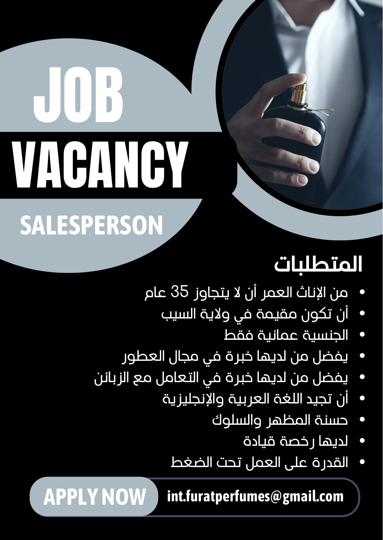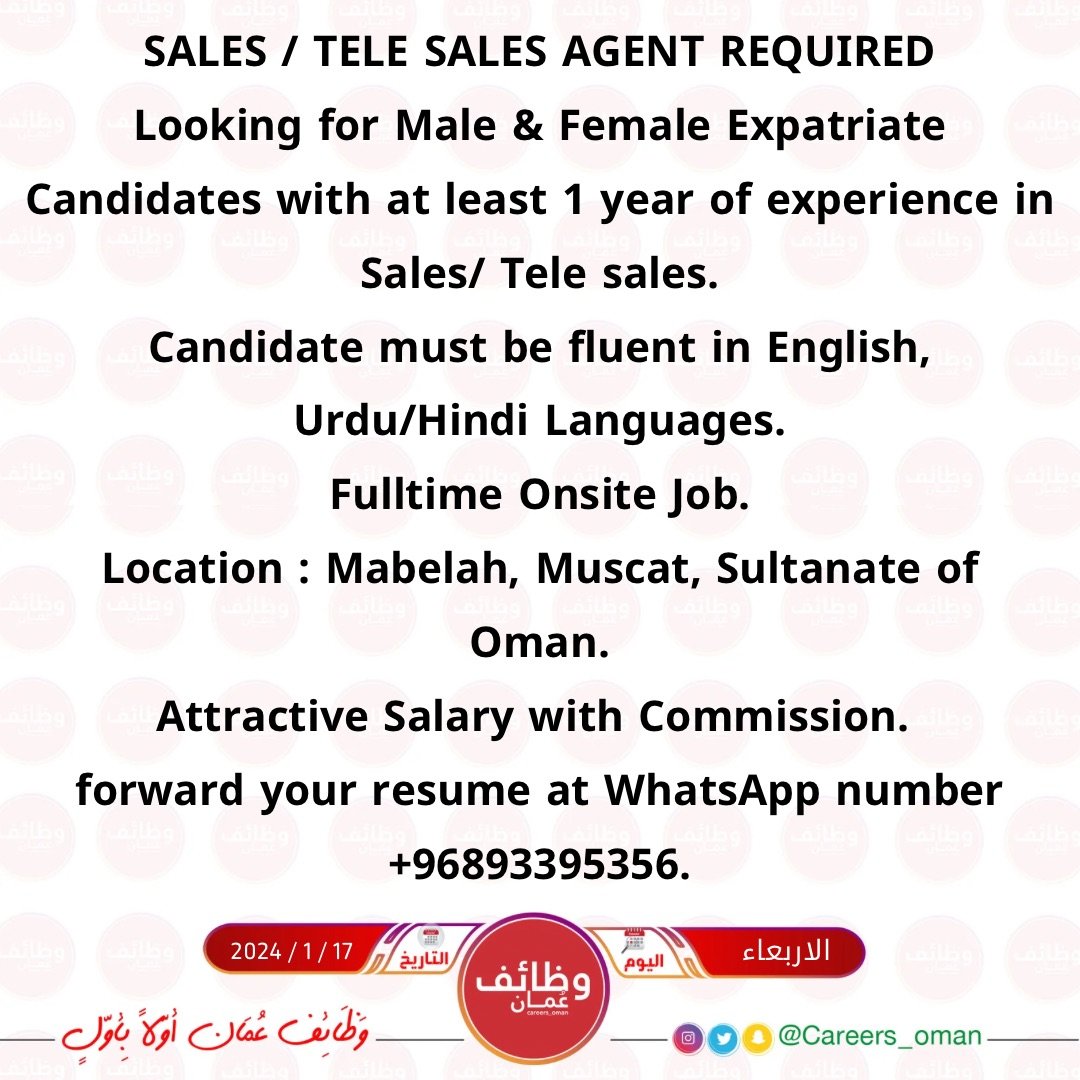 شركة رائدة في ولاية السيب - وظيفة شاغرة ( SALESPERSON )