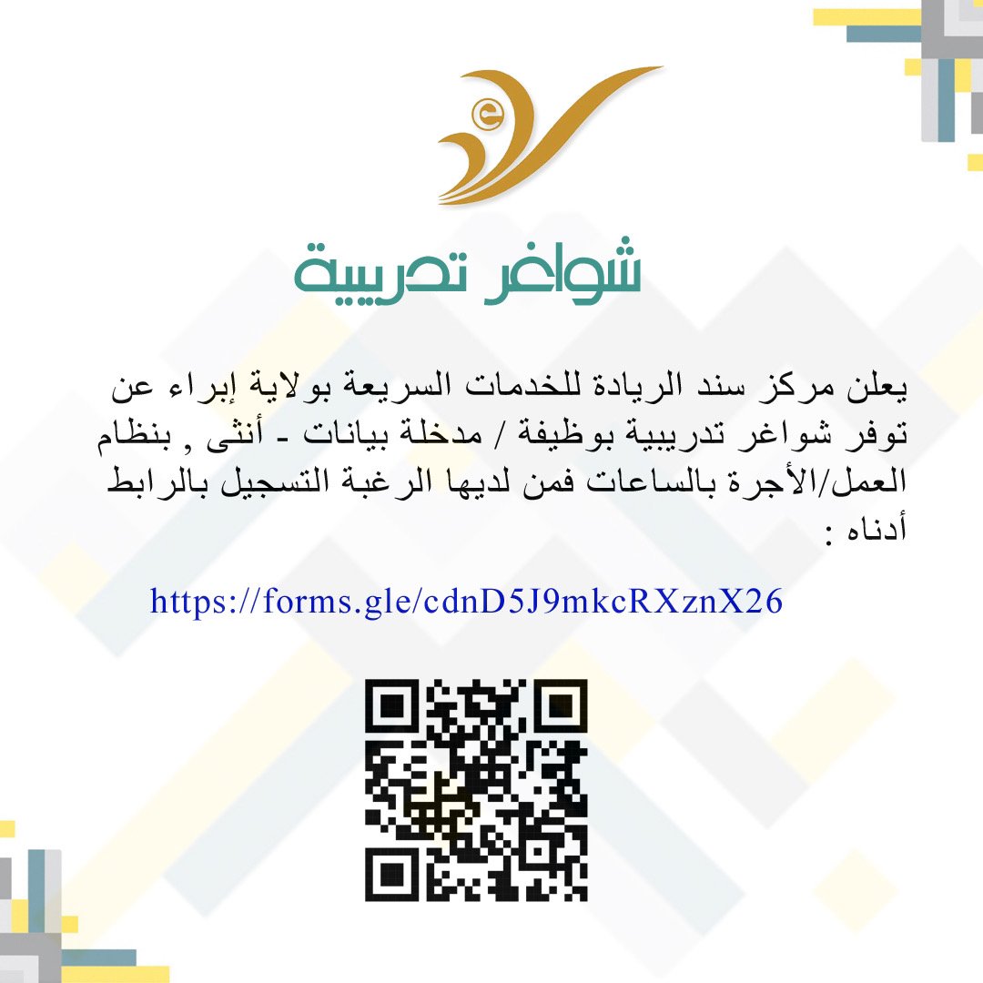 مركز سند بولاية إبراء - فرصة تدريبية ( مدخلة بيانات أنثى )