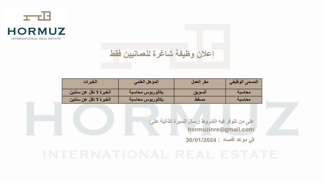 شركة هرمز - فرص وظيفية ( محاسبة )