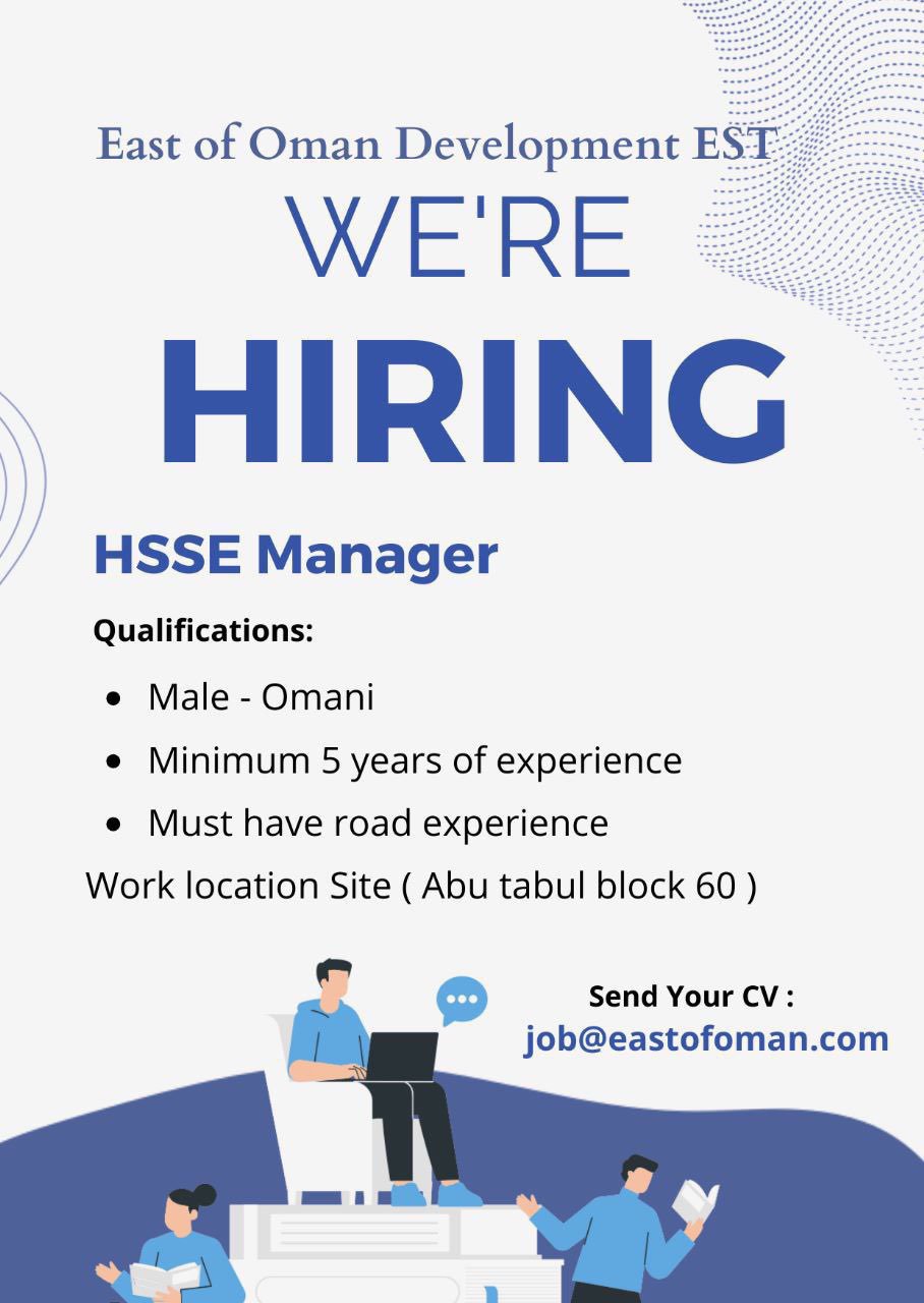 شركة East of Oman Development - وظيفة شاغرة ( HSSE Manager )