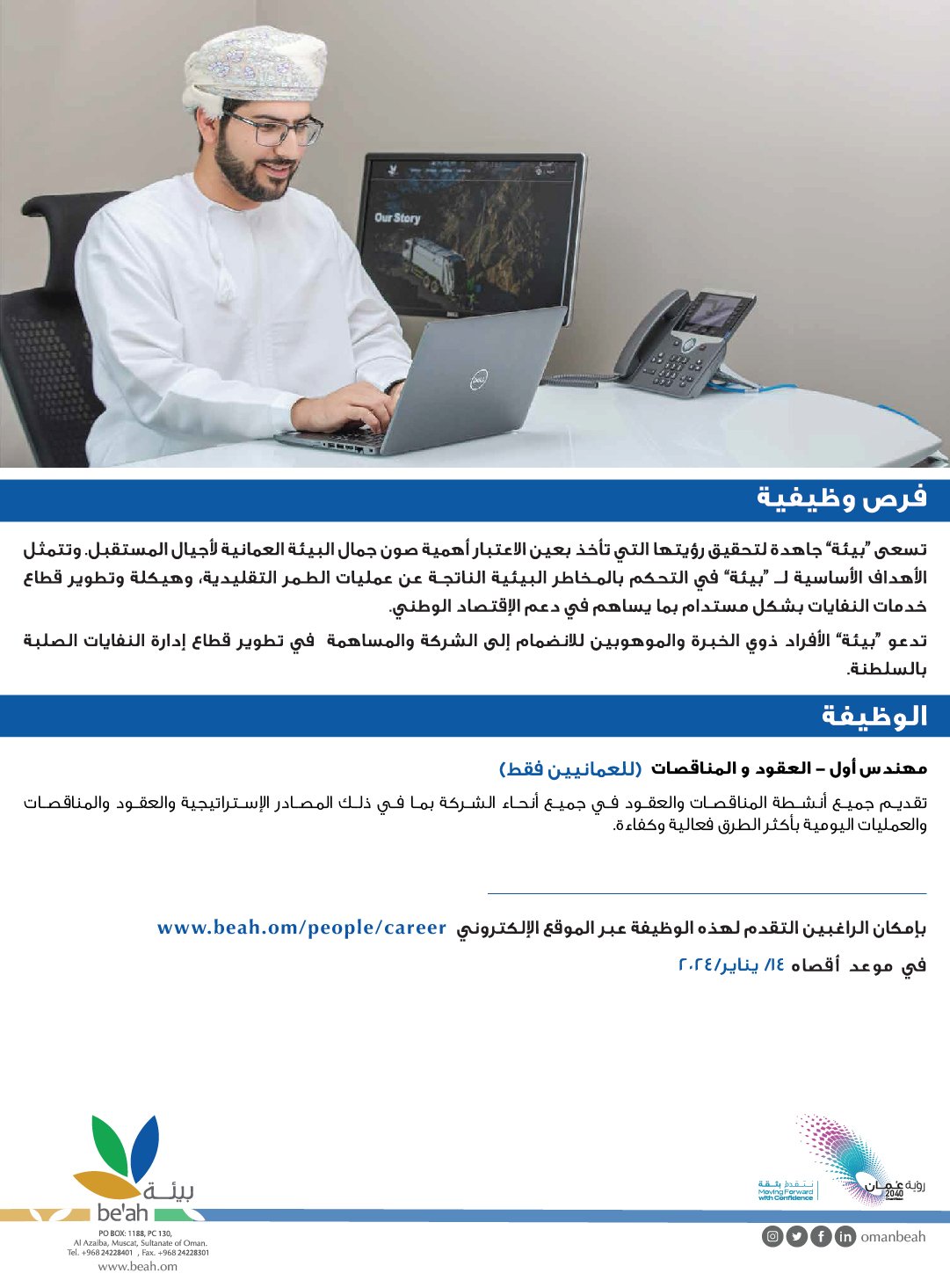 شركة بيئة - وظيفة شاغرة ( مهندس أول - العقود والمناقصات )