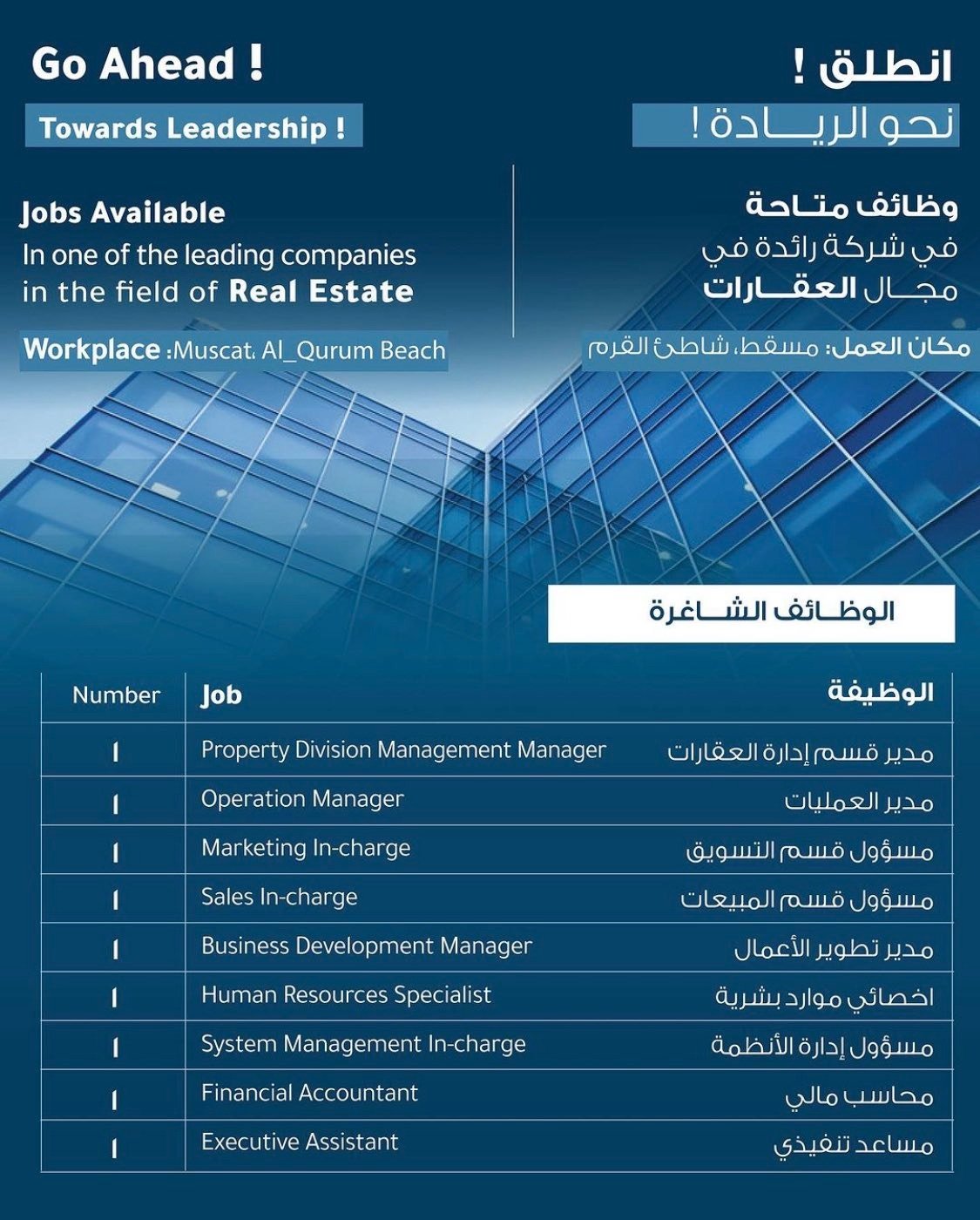 شركة رائدة في مجال العقارات - فرص وظيفية