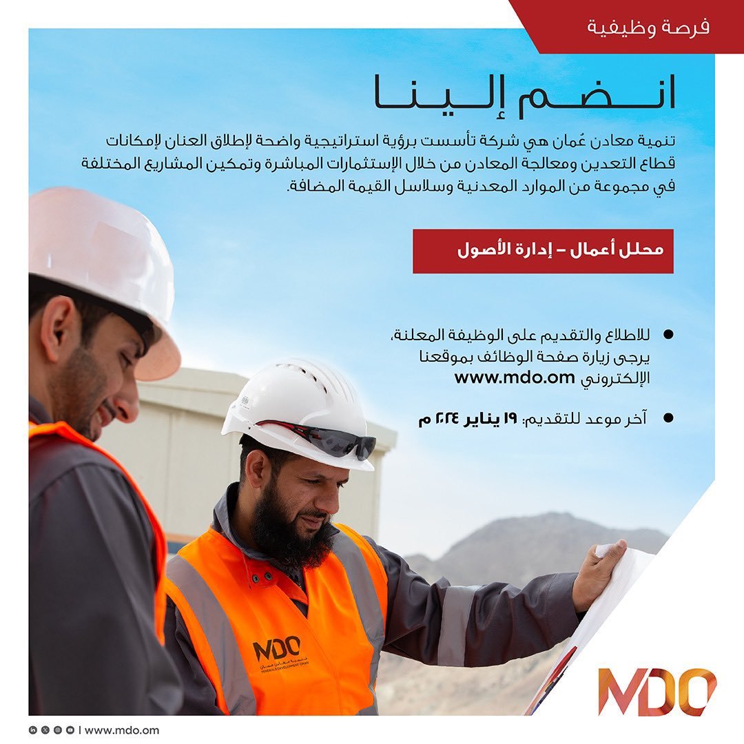 شركة تنمية معادن عمان - وظيفة شاغرة ( محلل أعمال - إدارة الأصول )