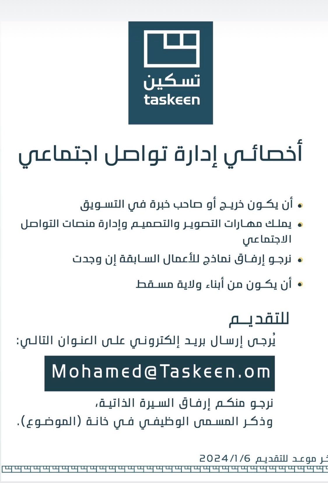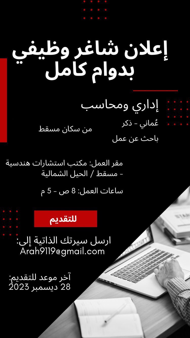 مكتب إستشارات هندسية في مسقط - وظيفة شاغرة ( إداري ومحاسب - ذكر )