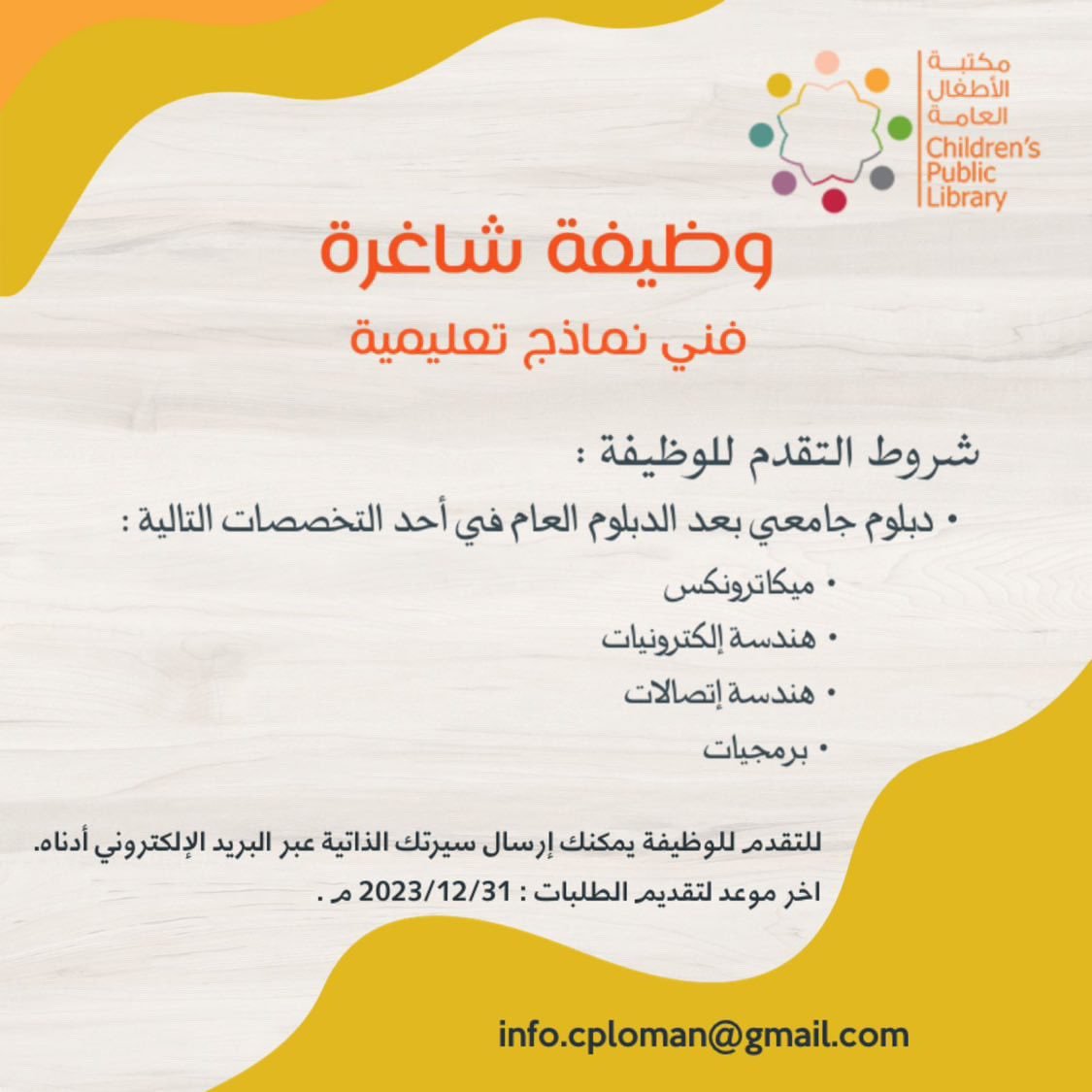 مكتبة الأطفال العامة في القرم - وظيفة شاغرة ( فني نماذج تعليمية )
