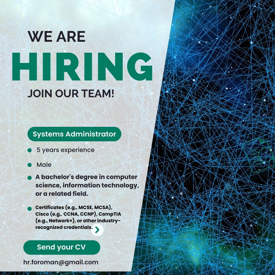 شركة معدات طبية في مسقط - وظيفة شاغرة ( Systems Administrator )