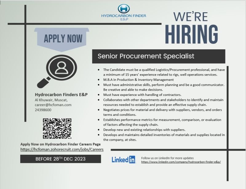 شركة هايدرو كربون فايندر - وظيفة شاغرة ( Senior Procurement Specialist )
