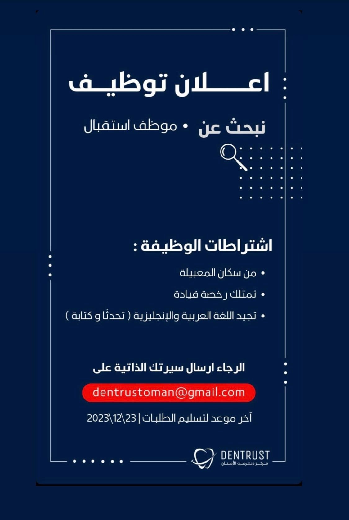 مركز دنترست للأسنان في المعبيلة - وظيفة شاغرة ( موظف استقبال )