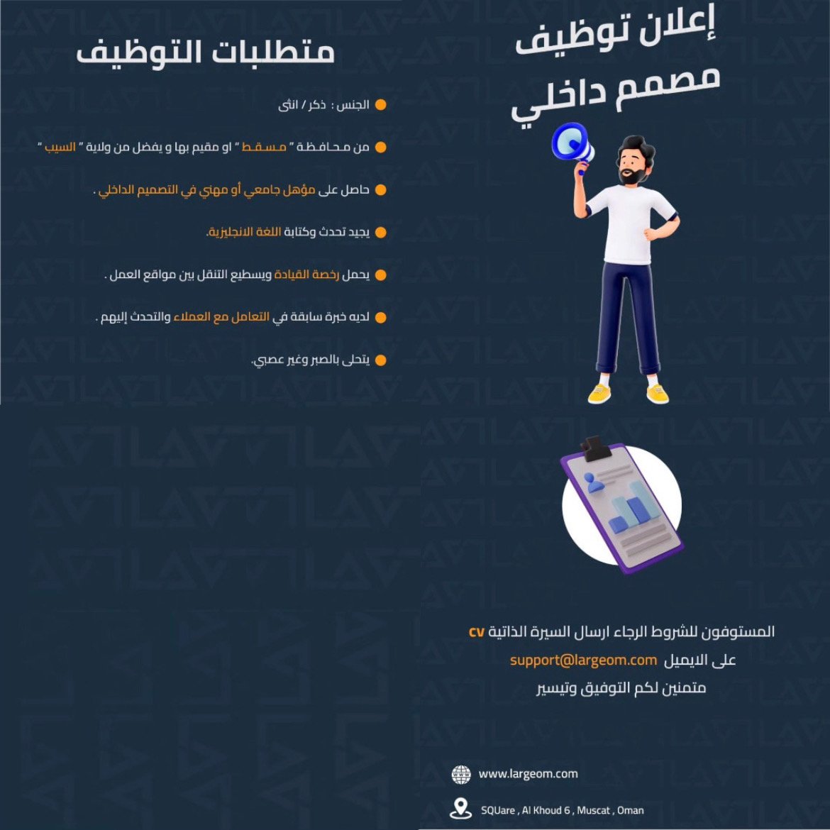شركة لارج في السيب - وظيفة شاغرة ( مصمم داخلي )