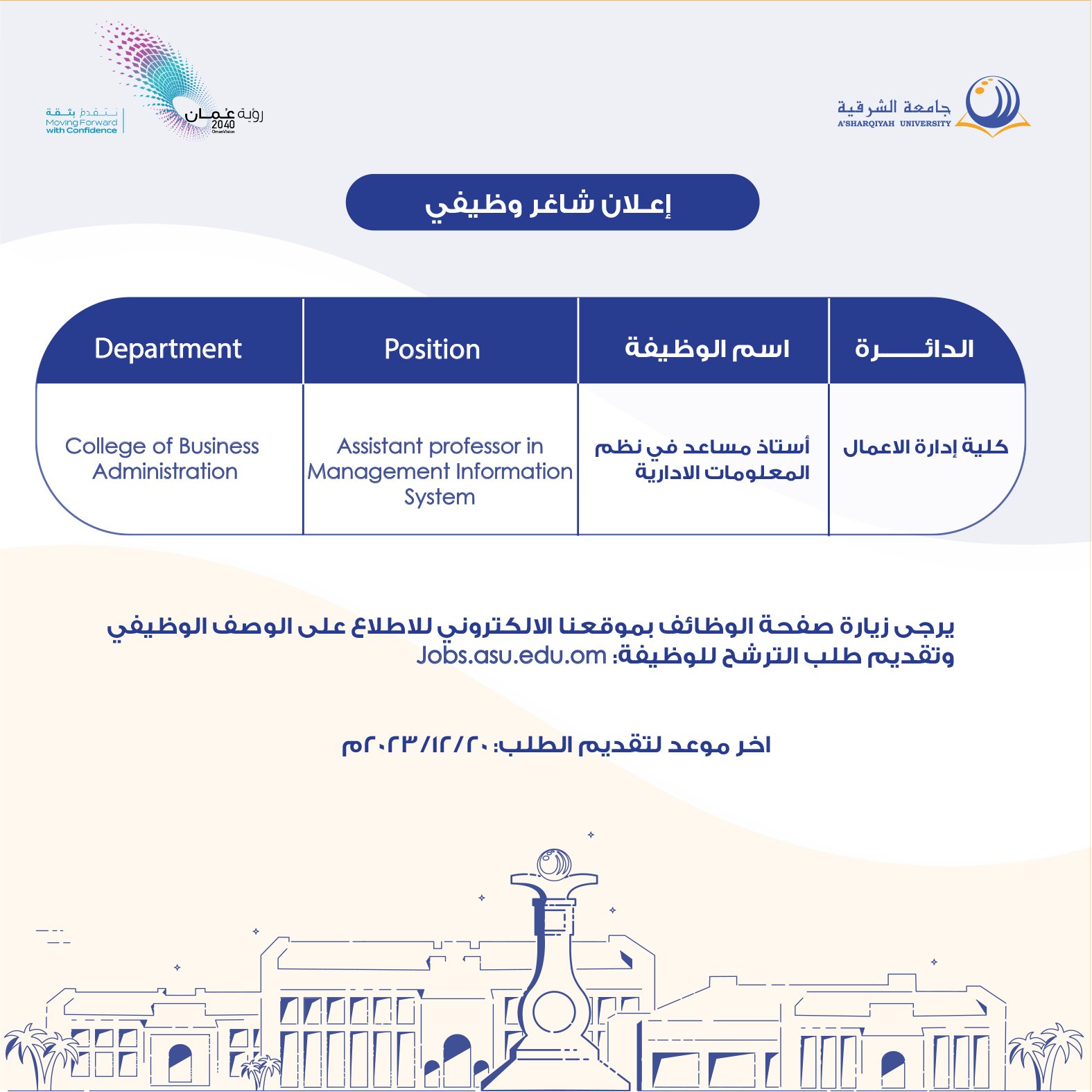 جامعة الشرقية - وظيفة شاغرة ( أستاذ مساعد في نظم المعلومات الإدارية )