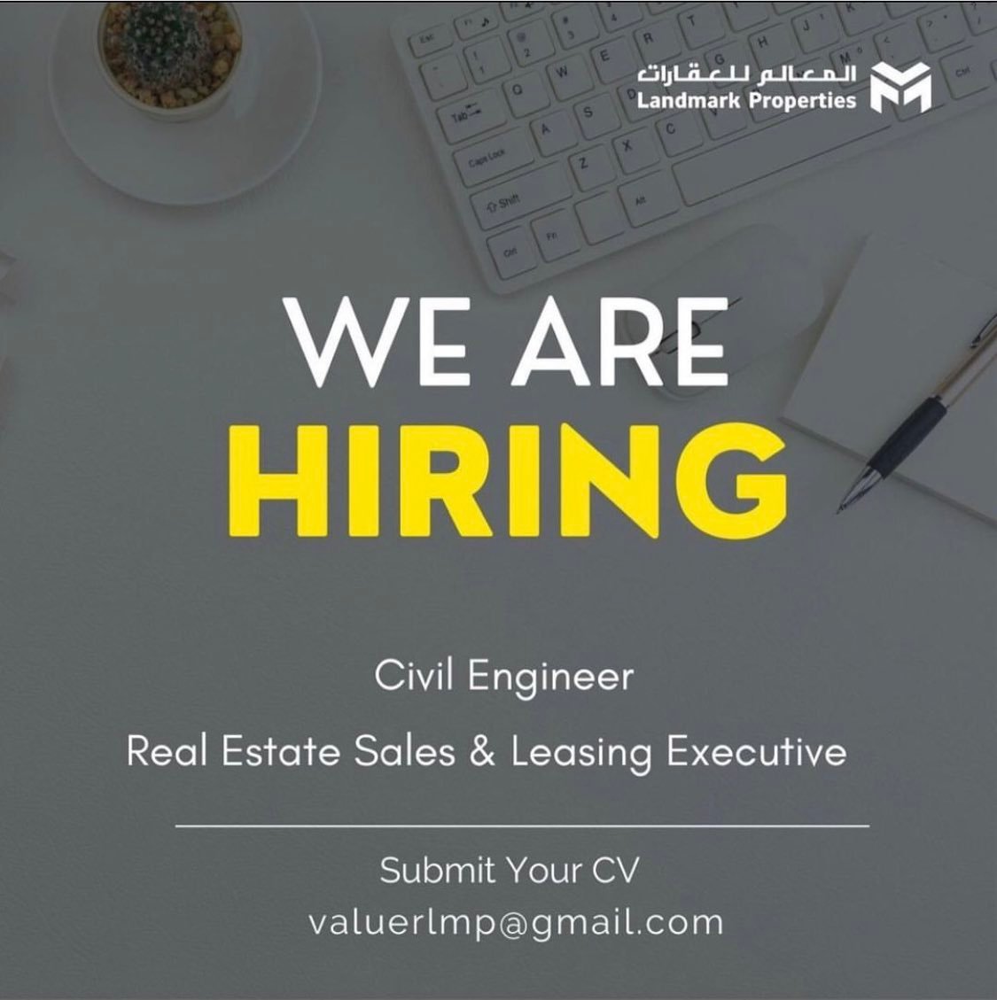 شركة المعالم للعقارات - فرص وظيفية ( مهندس مدني Civil Engineer / تنفيذي مبيعات وتاجير العقارات Real Estate Sales & Leasing Executive )