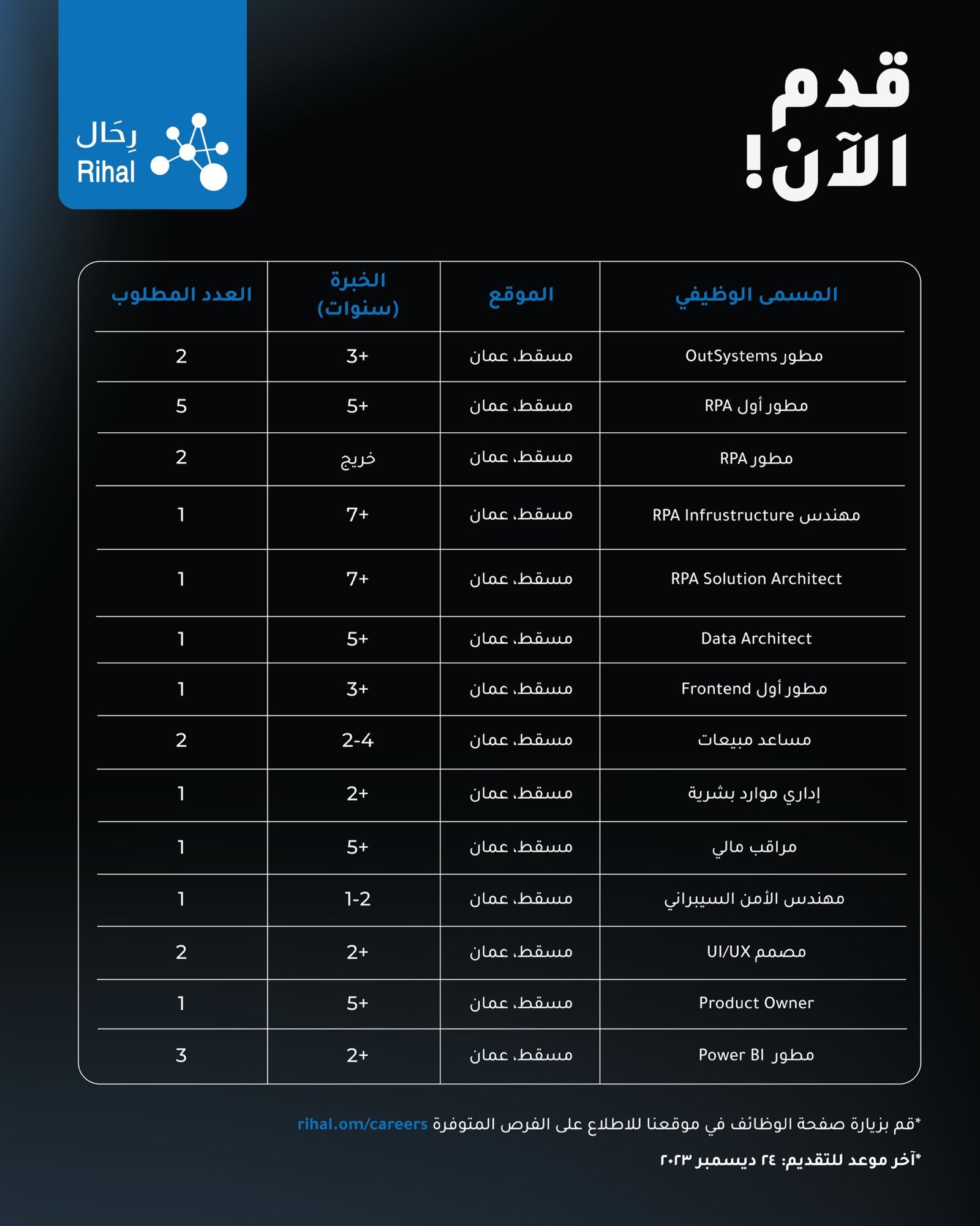 شركة رِحَال - وظائف شاغرة