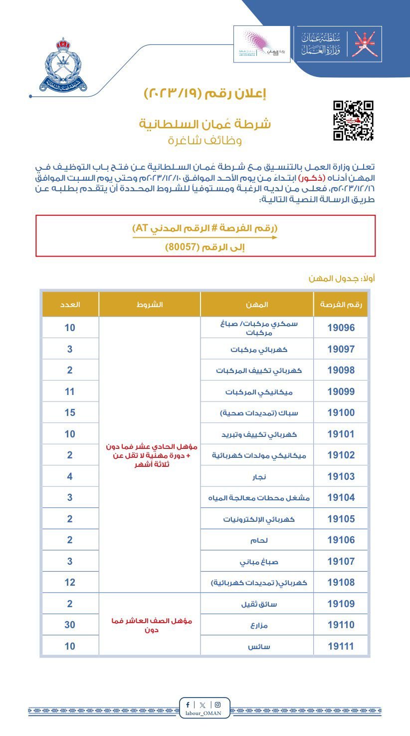 شرطة عُمان السلطانية - فتح باب التوظيف
