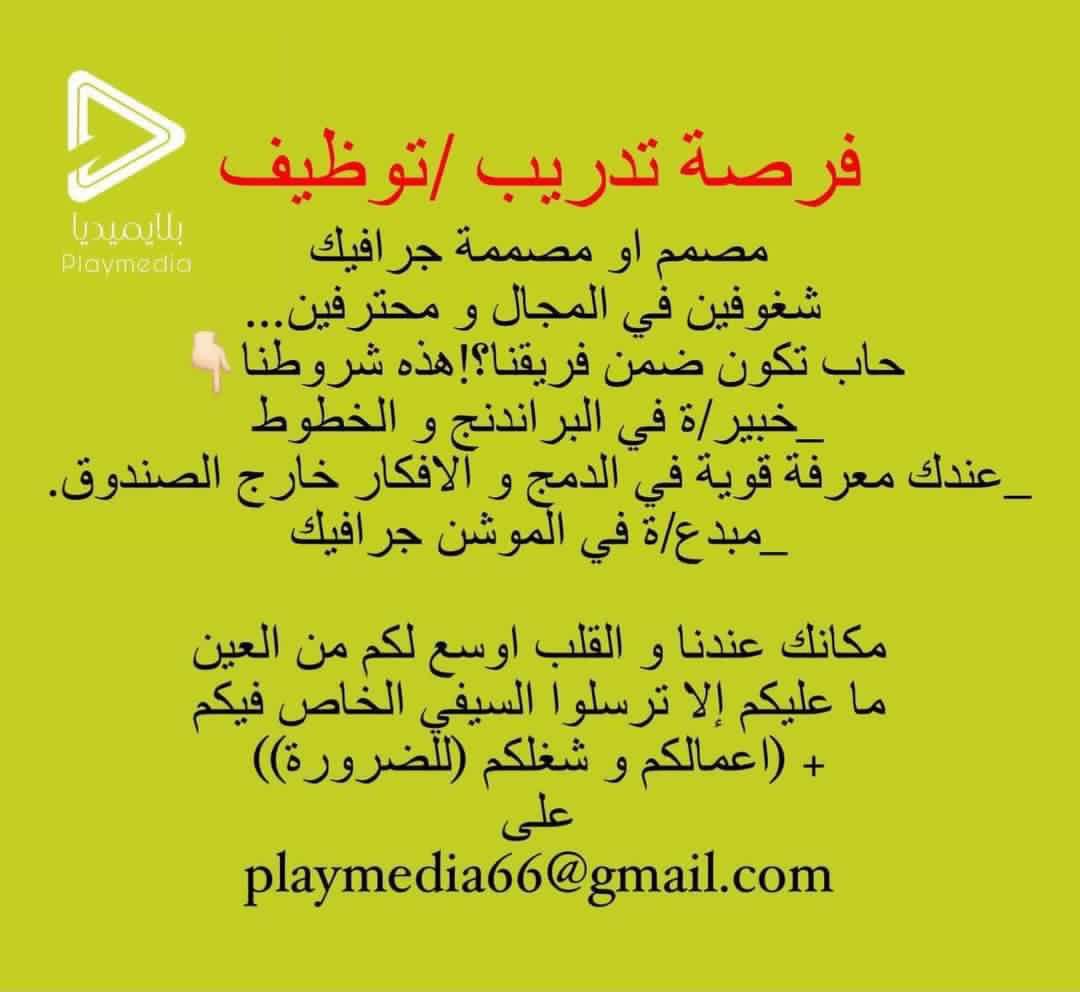 شركة بلايميديا - فرصة تدريب وتوظيف ( مصمم / مصممة جرافيك )