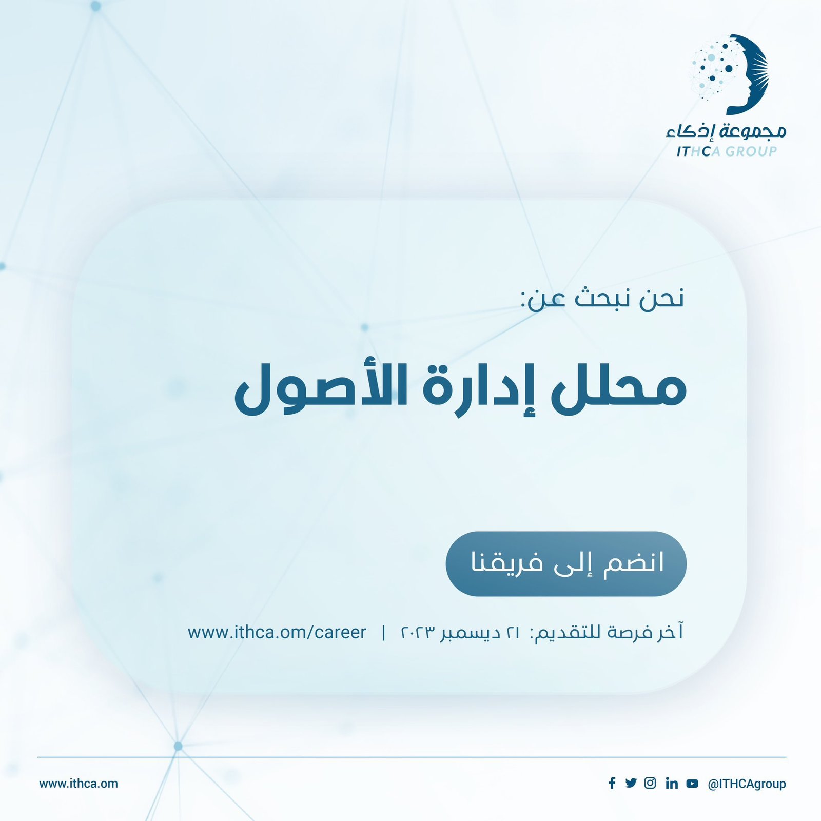 مجموعة إذكاء في مسقط - وظيفة شاغرة ( محلل إدارة الأصول / Asset Management Analyst )