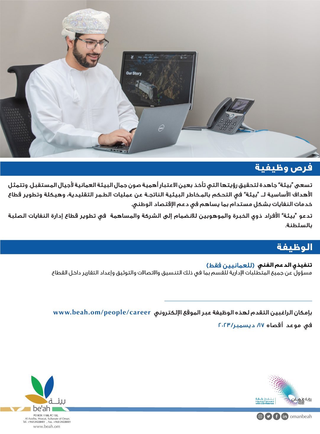 شركة بيئة - وظيفة شاغرة ( تنفيذي الدعم الفني )