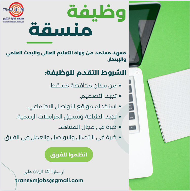 معهد إدارة التغيير في مسقط - وظيفة شاغرة ( منسقة )