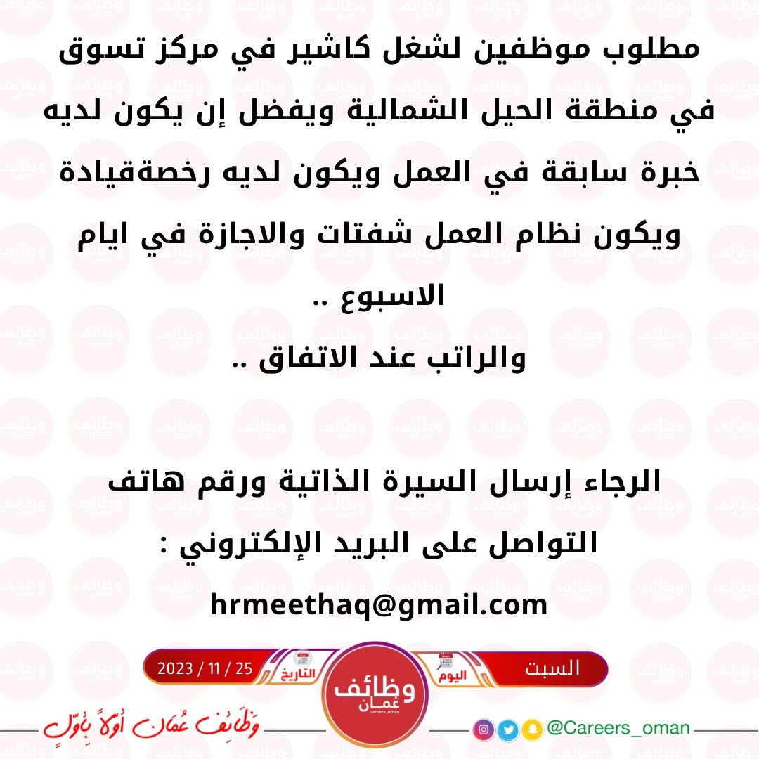 مركز تسوق في منطقة الحيل الشمالية - وظيفة شاغرة ( كاشير )