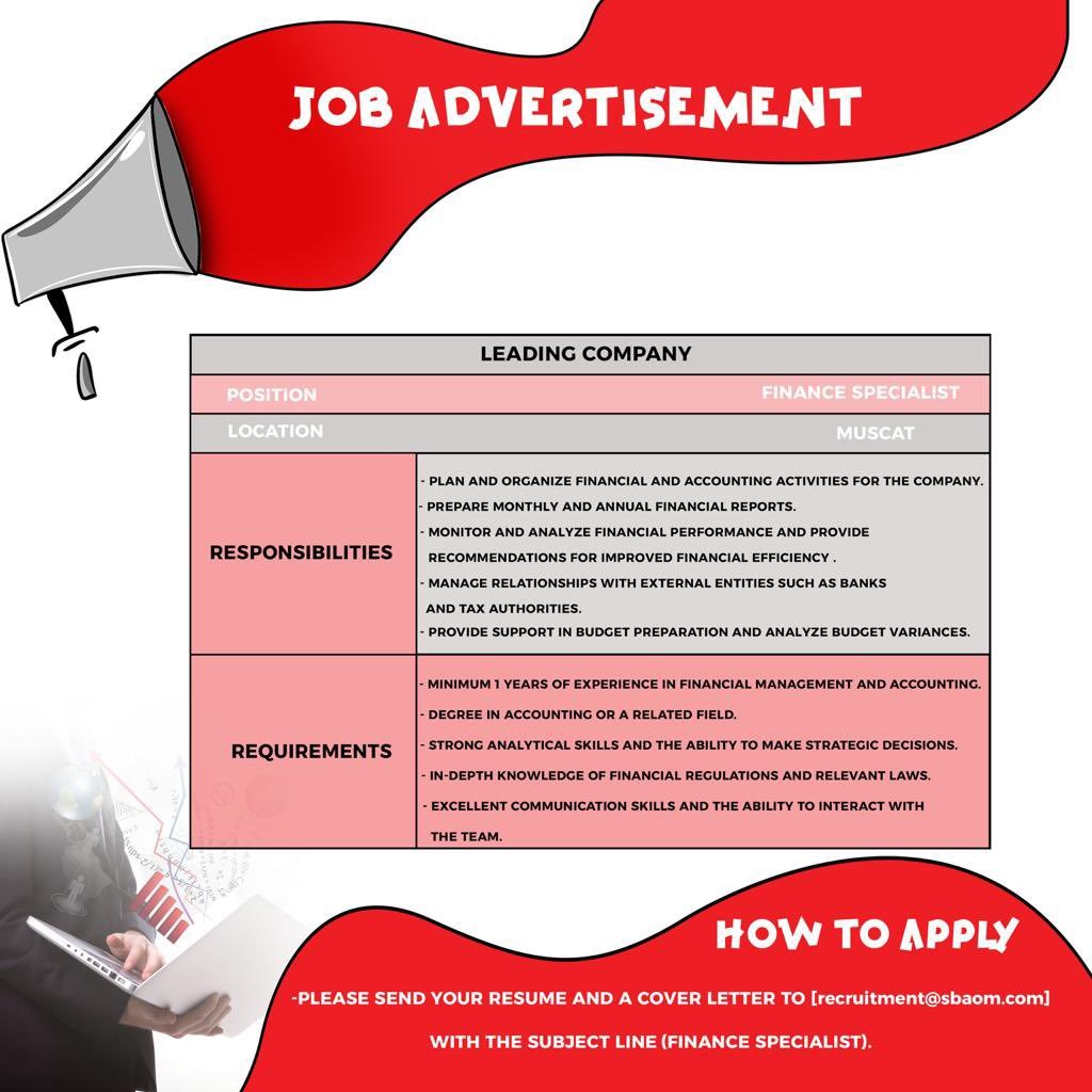 مؤسسة سلطان العالمية - وظيفة شاغرة ( FINANCE SPECIALIST / اخصائي مالي )