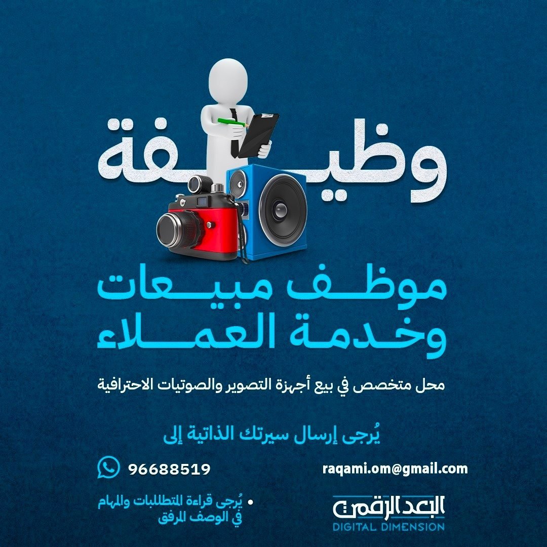 محل متخصص في بيع أجهزة التصوير والصوتيات الاحترافية - وظيفة شاغرة ( موظف مبيعات وخدمة العملاء )