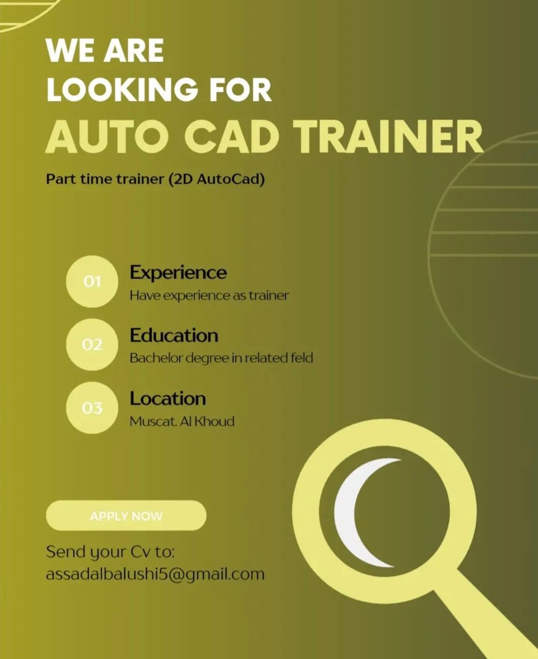 شركة رائدة - وظيفة شاغرة بدوام جزئي ( AUTO CAD TRAINER )