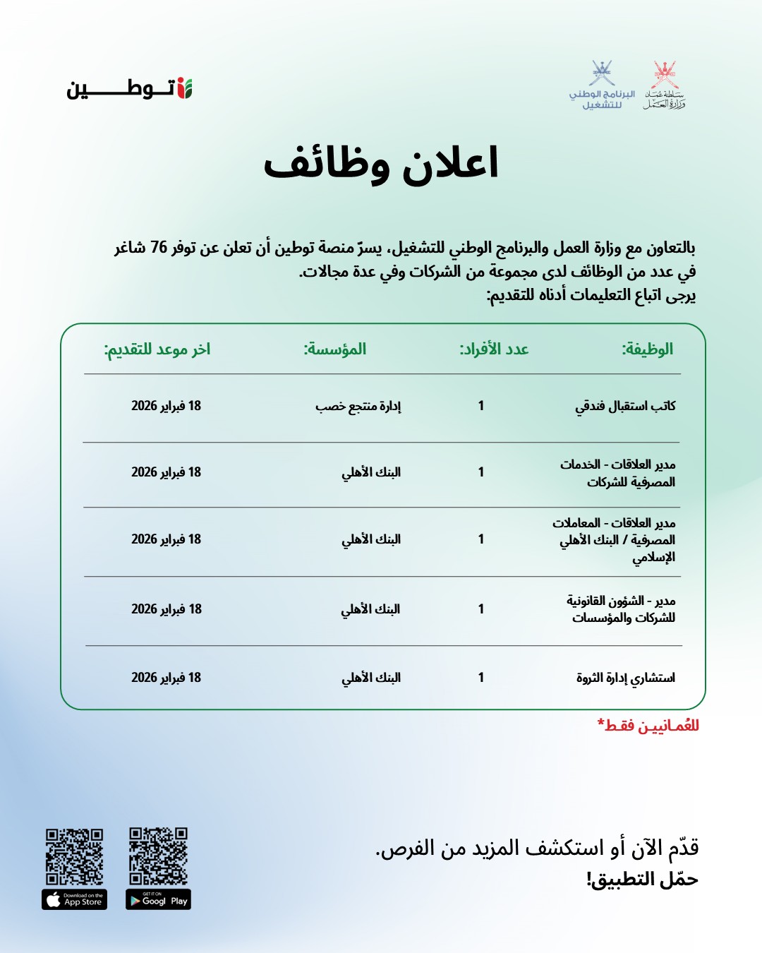 منصة توطين - توفر 76 شاغر وظيفي لدى مجموعة من الشركات وفي عدة مجالات