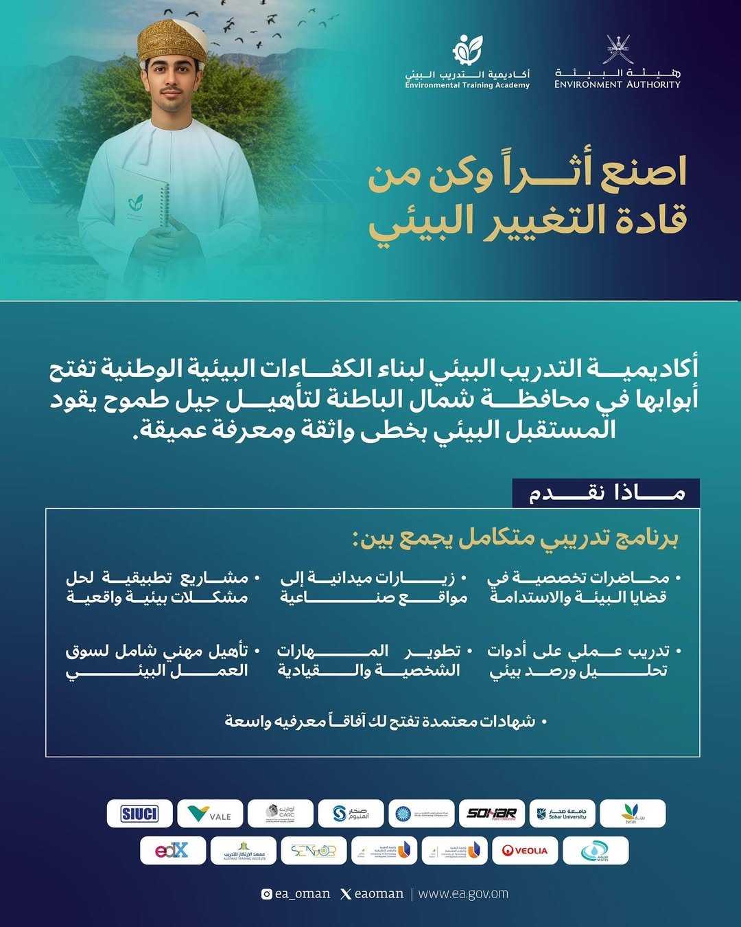 هيئة البيئة بشمال الباطنة - تُطلق برنامج “أكاديمية التدريب البيئي” للباحثين عن عمل والخريجين في التخصصات البيئية والهندسية او ذات الصلة