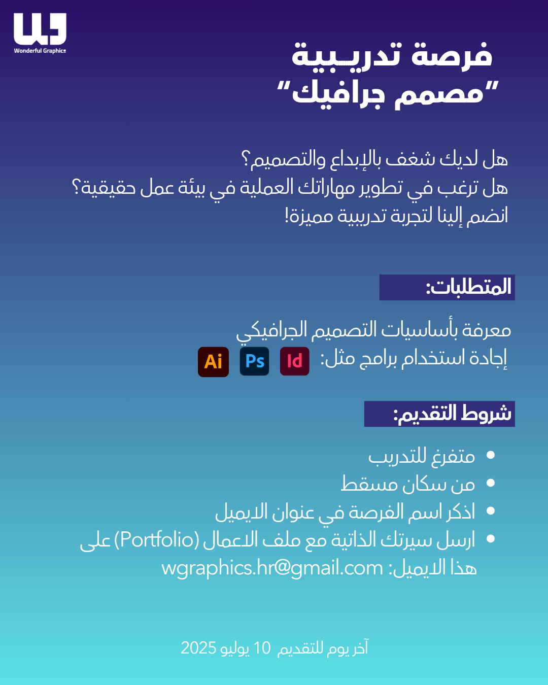 شركة Wonderful Graphic - فرص تدريبية ( ادارة حسابات التواصل الإجتماعي + مصمم جرافيك )