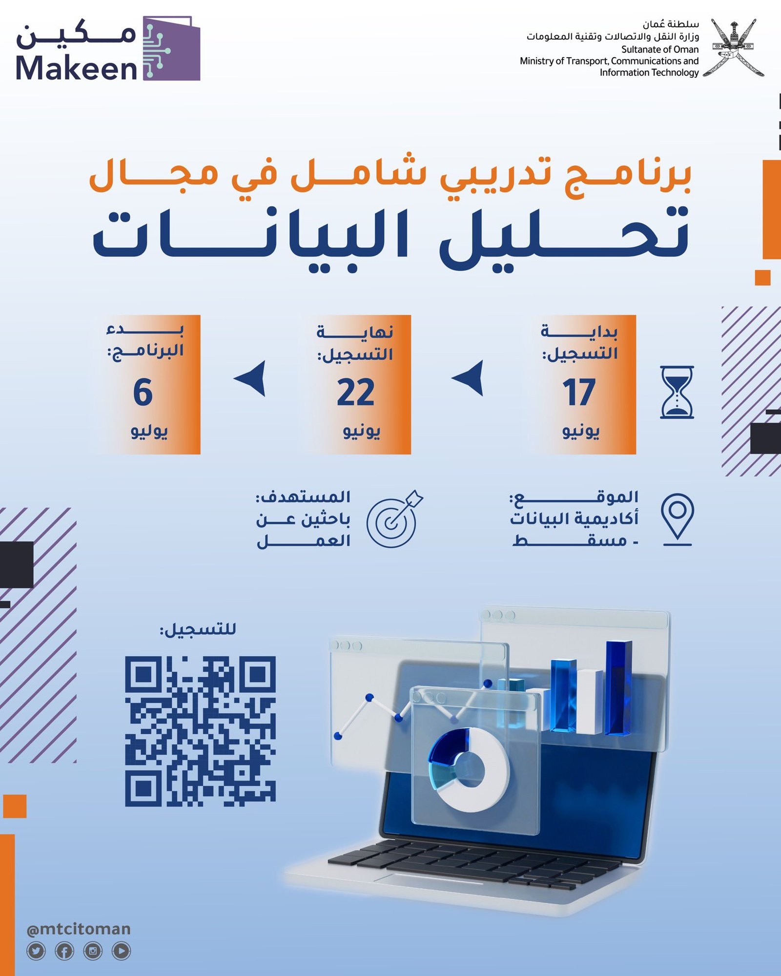 وزارة النقل والاتصالات وتقنية المعلومات - برنامج مكين التدريبي الشامل في مجال تحليل البيانات للباحثين عن العمل