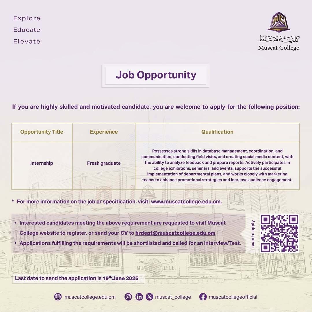 كلية مسقط - فرصة تدريب للخريجين