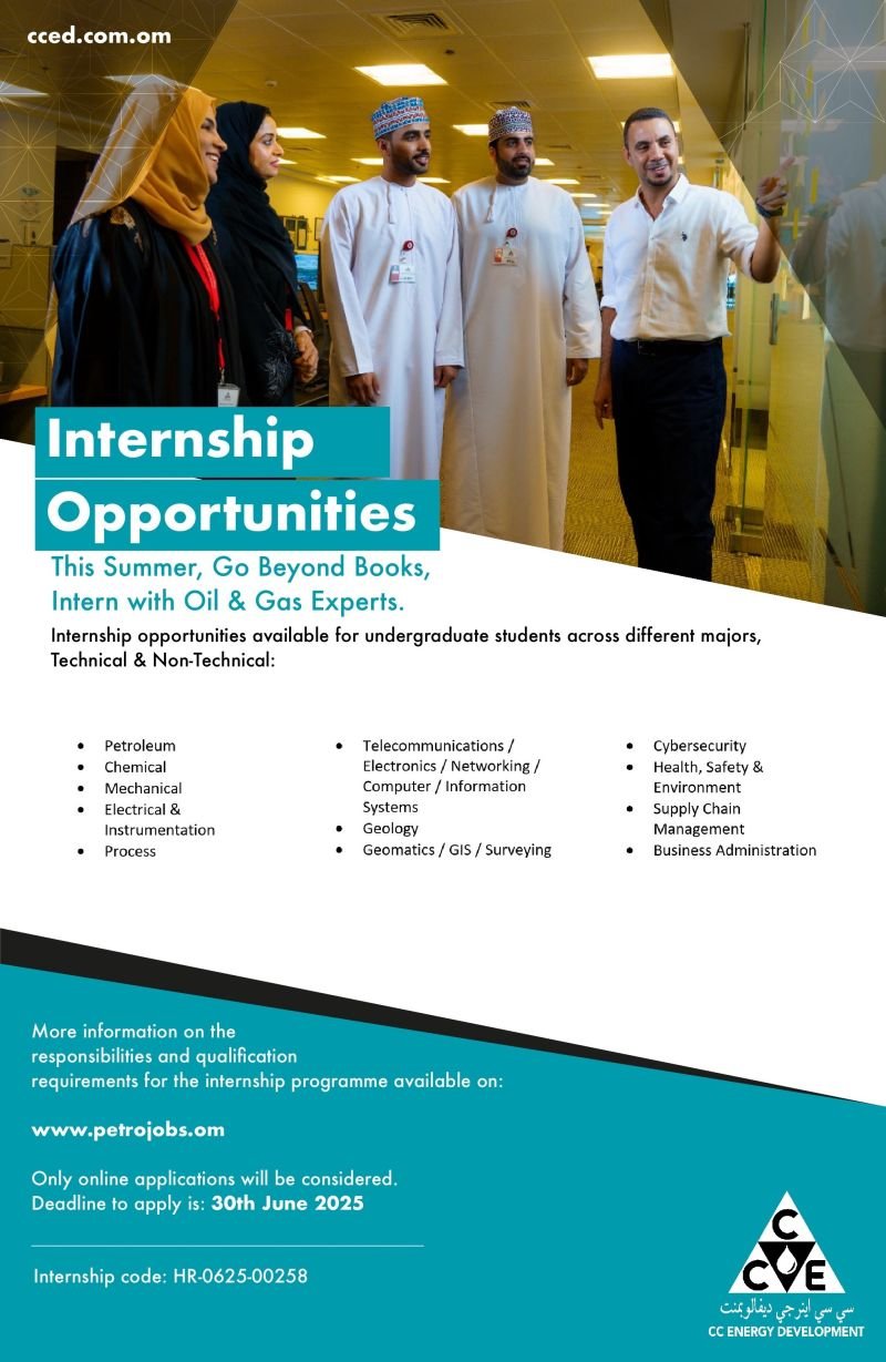 شركة سي سي إينرجي ديفالوبمنت - فتح باب التقديم لبرنامج التدريب الصيفي لعام 2025 لطلبة المرحلة الجامعية في مجالات فنية وإدارية متنوعة