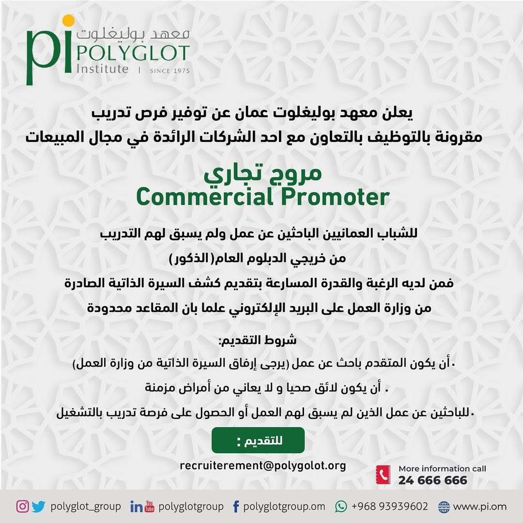 معهد بوليغلوت - فرص تدريبية مقرونة بالتوظيف ( مروج تجاري )
