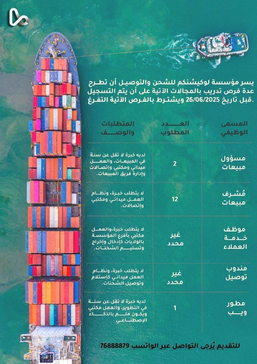 شركة لوكيشنكم للشحن والتوصيل - فرص تدريبية في مختلف المجالات
