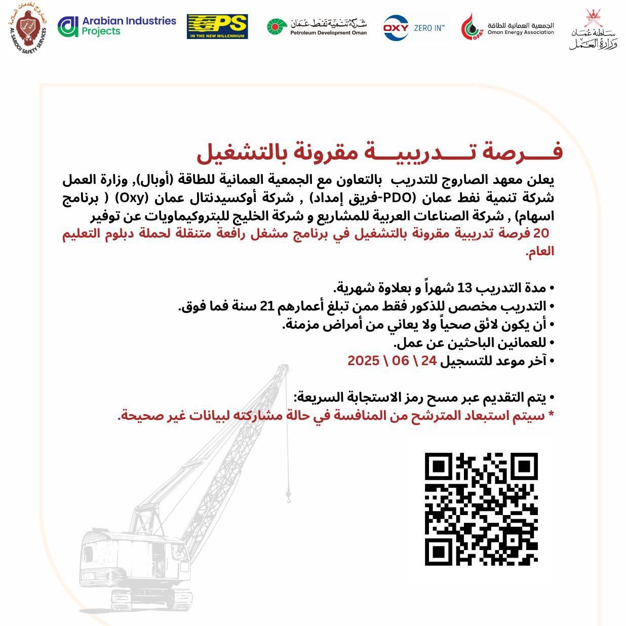معهد الصاروج للتدريب - 20 فرصة تدريبية مقرونة بالتشغيل ( برنامج مشغل رافعة متنقلة )