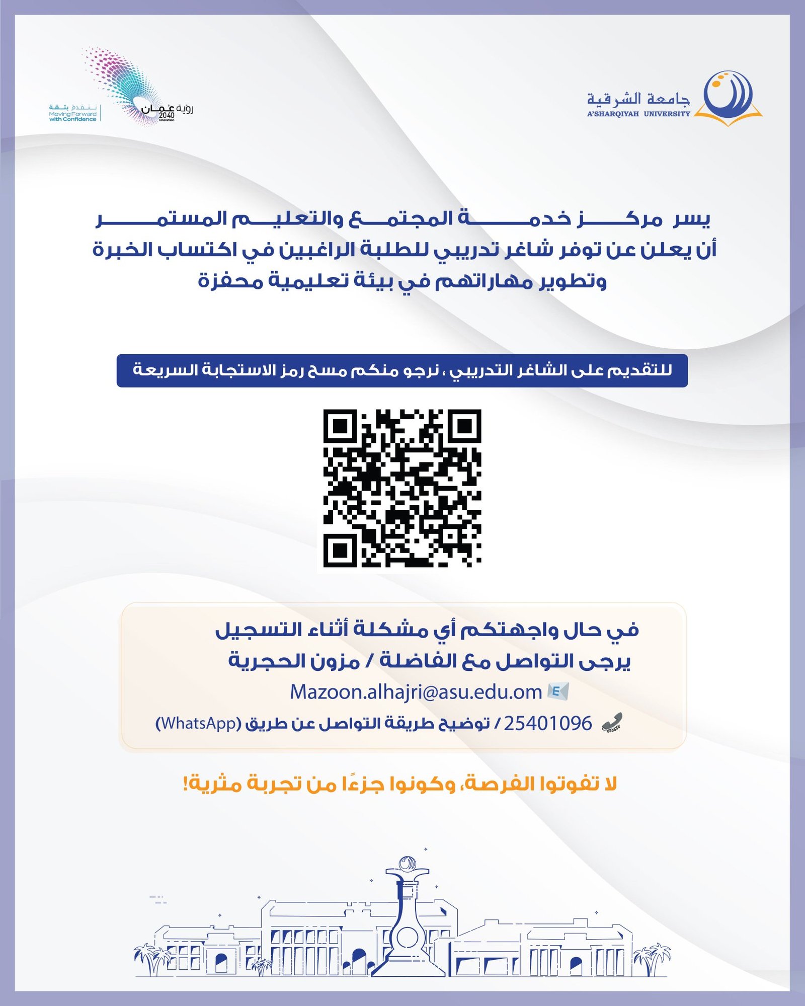 مركز خدمة المجتمع والتعليم المستمر بجامعة الشرقية - توفر شاغر تدريبي للطلبة