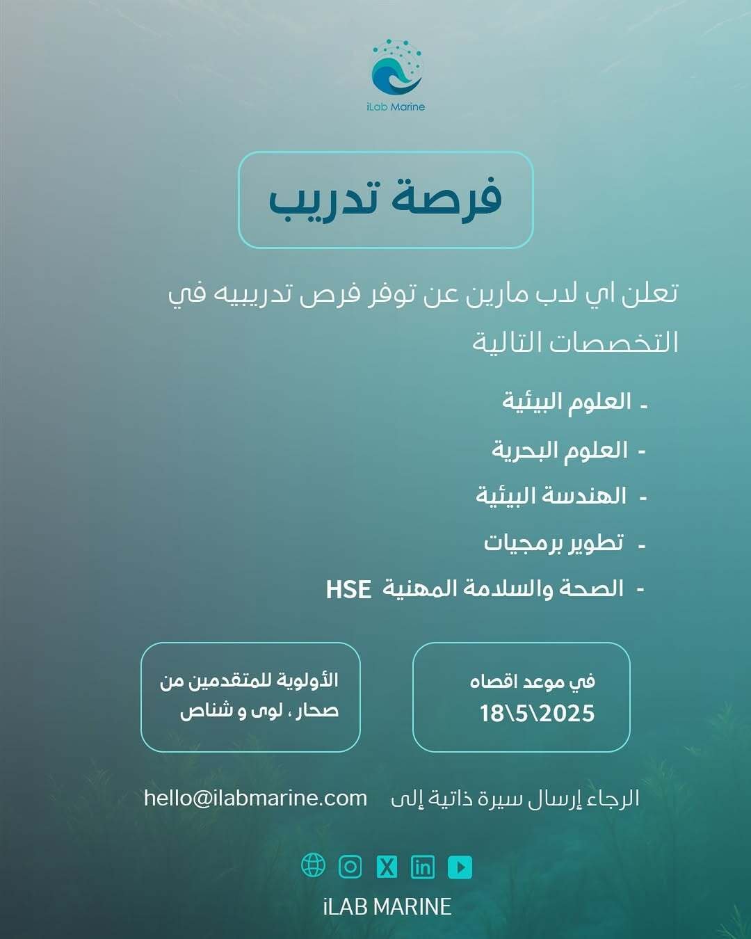 شركة اي لاب مارين في الباطنة - 5 فرص تدريبية