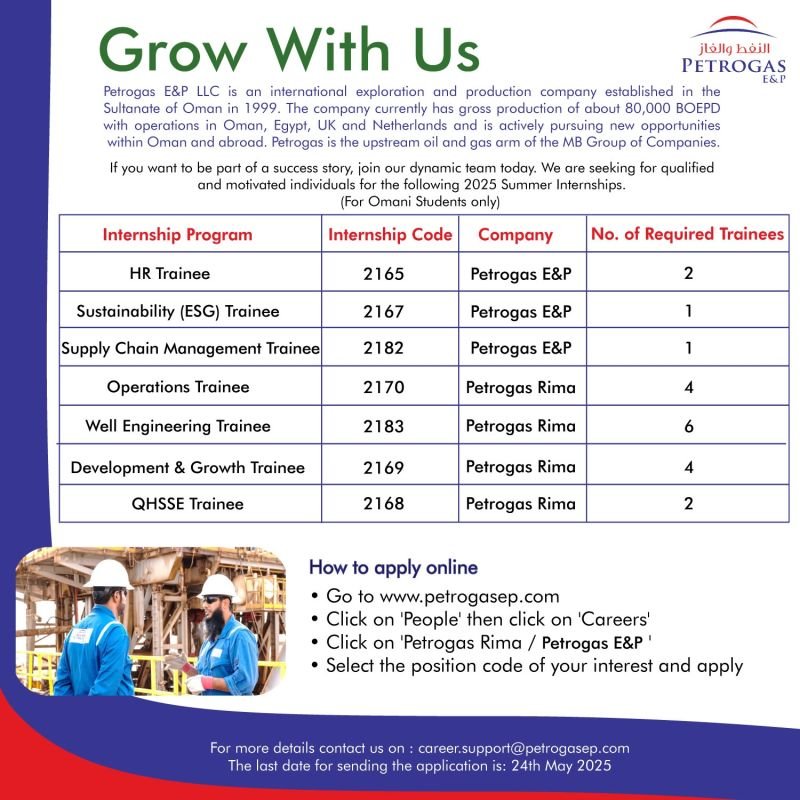شركة النفط والغاز Petrogas - فرص تدريب صيفي 2025