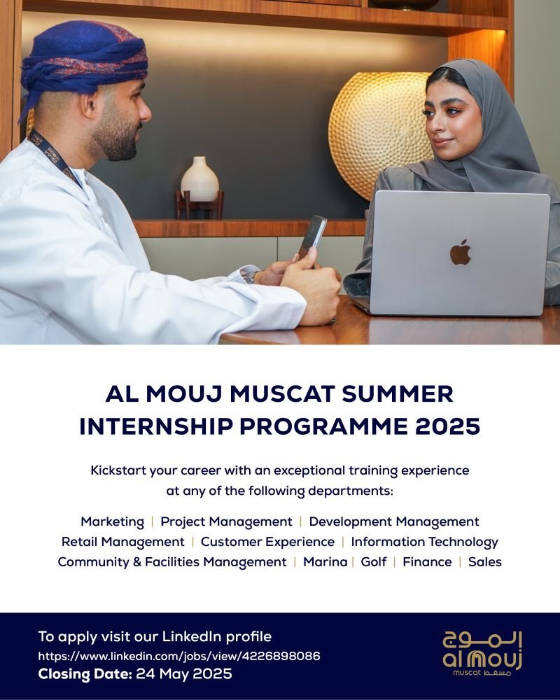 الموج مسقط - برنامج تدريب صيفي 2025 لطلبة الجامعات والكليات في مختلف الأقسام