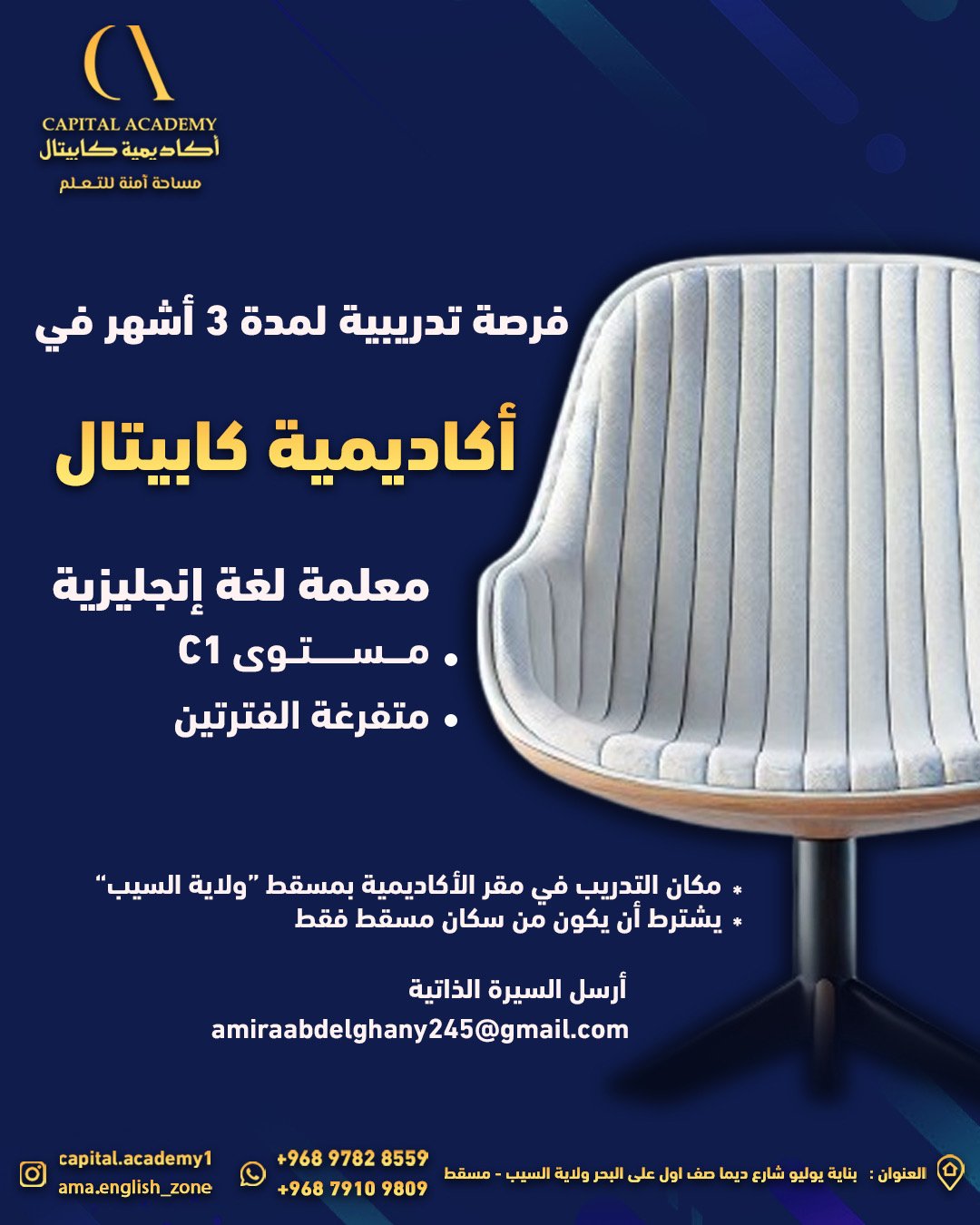 أكاديمية كابيتال في السيب - فرصة تدريبية لمدة 3 أشهر ( معلمة لغة انجليزية )