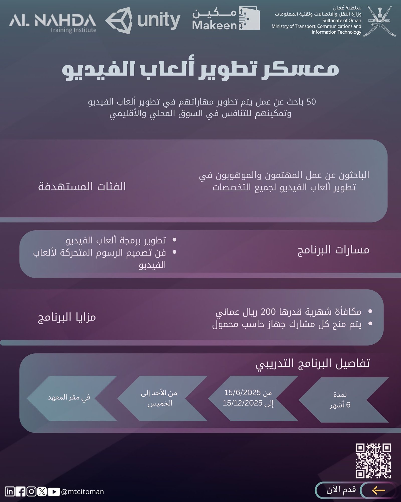 وزارة النقل والاتصالات وتقنية المعلومات - معسكر تطوير ألعاب الفيديو للباحثين عن العمل