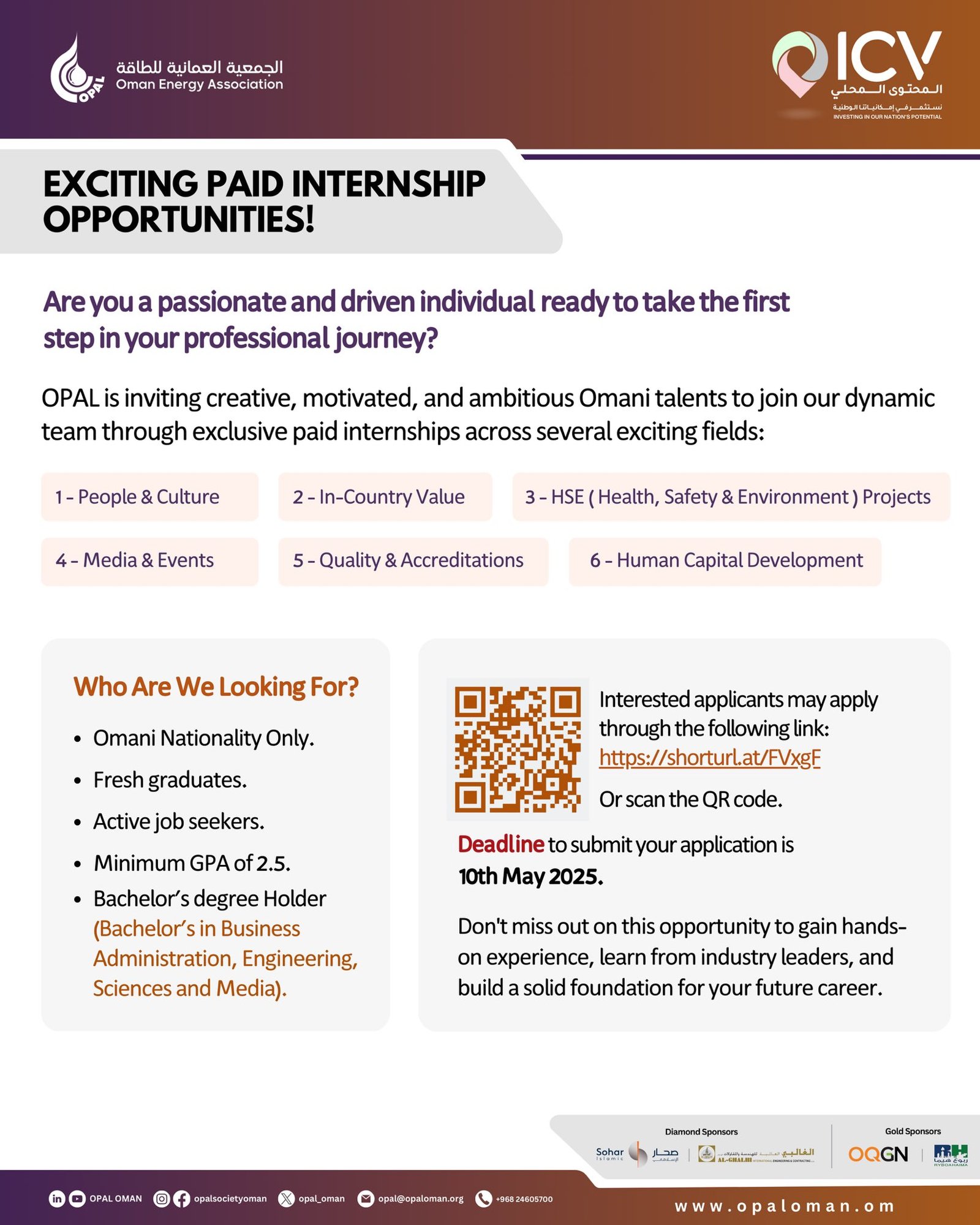 الجمعية العمانية للطاقة - فرص تدريبية في مختلف المجالات للخريجين الجدد