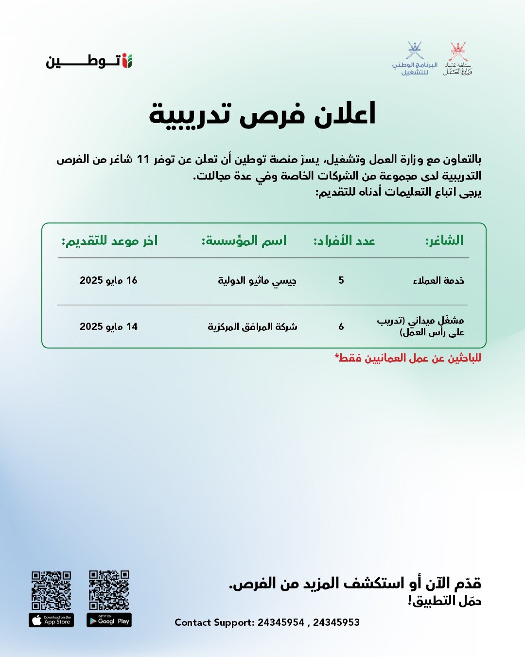 منصة توطين - 11 شاغر من الفرص التدريبية لدى مجموعة من الشركات الخاصة وفي عدة مجالات