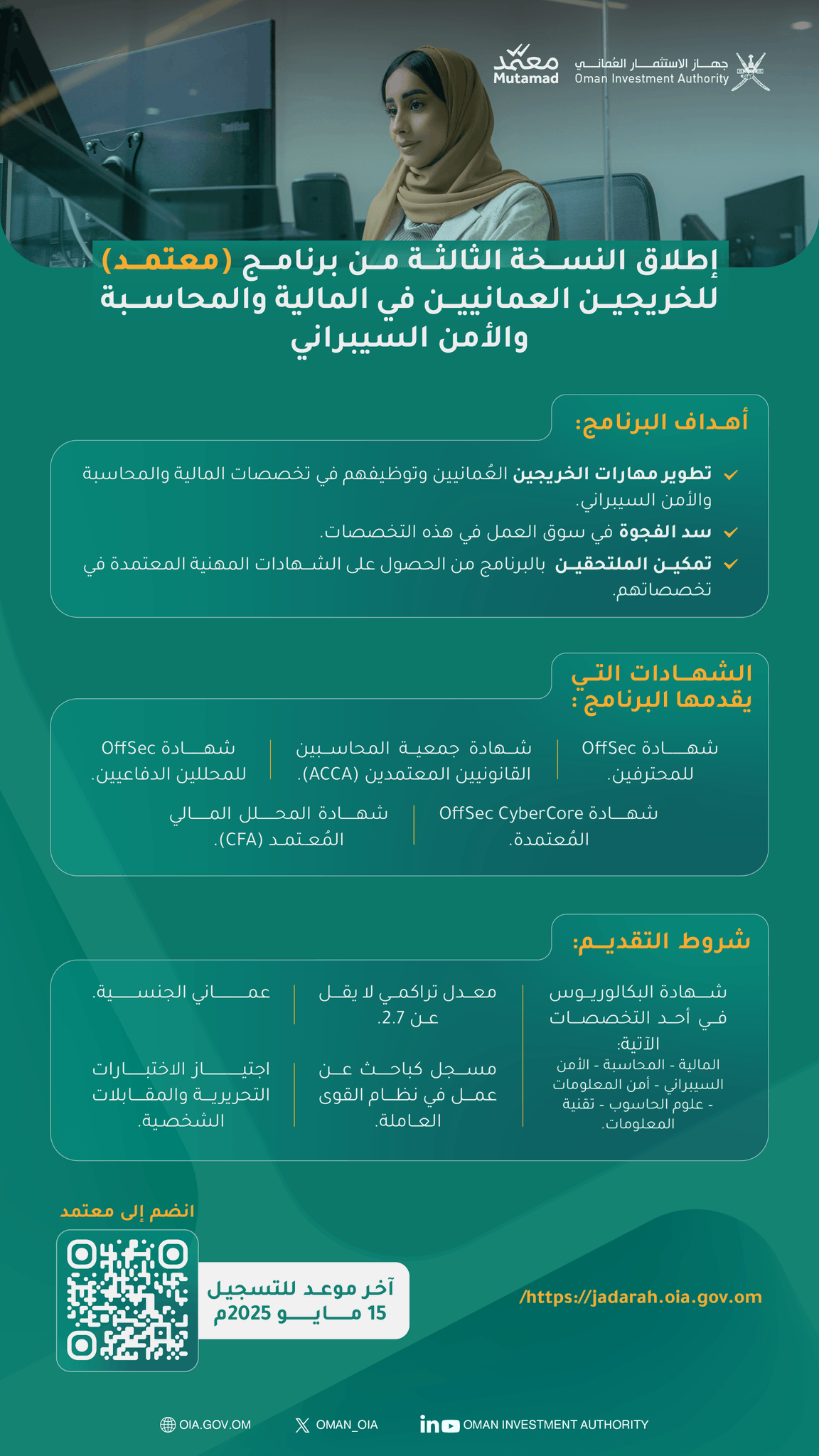 جهاز الاستثمار العماني - برنامج معتمد لتطوير الخريجين في المالية والمحاسبة والأمن السيبراني