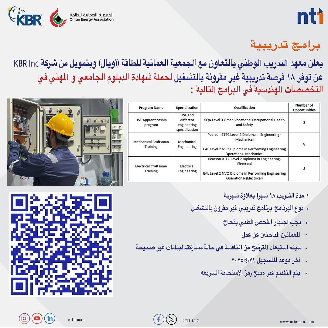معهد التدريب الوطني - 18 فرصة تدريبية مقرونة بالتشغيل في مختلف التخصصات الهندسية
