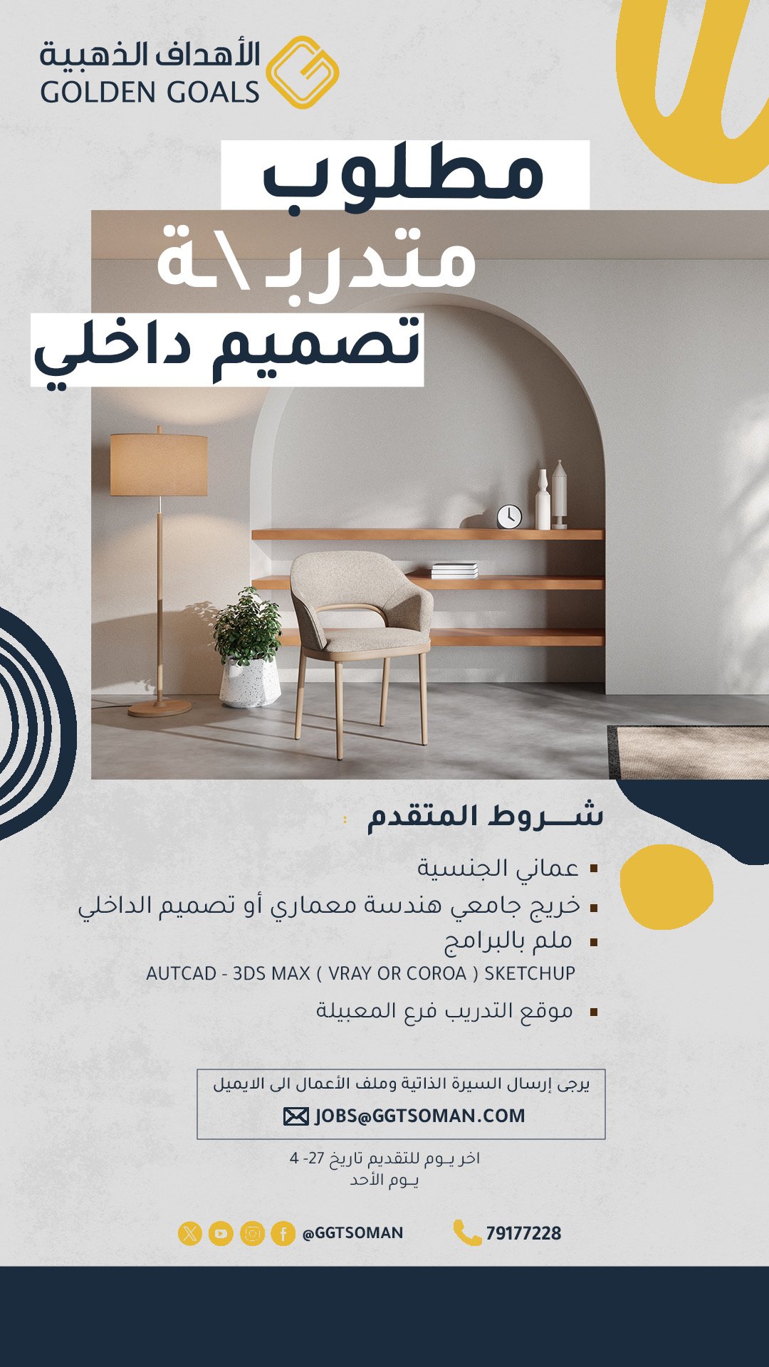 شركة الأهداف الذهبية فرع المعبيلة - فرصة تدريبية ( تصميم داخلي )